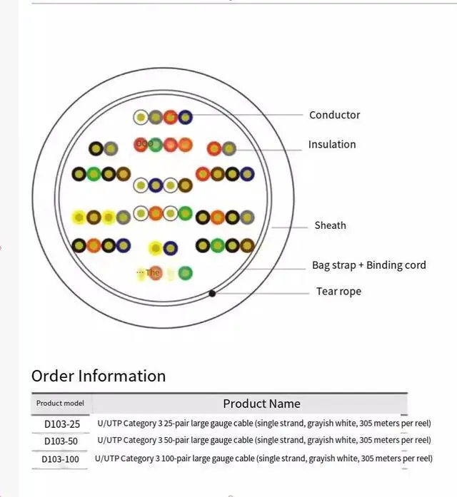 SHIP YIZHOU CAT5 Unshielded Twisted Pair Voice transmission Multipairs Cable D105-50 For indoor use Category 5 50-pair cable 305m