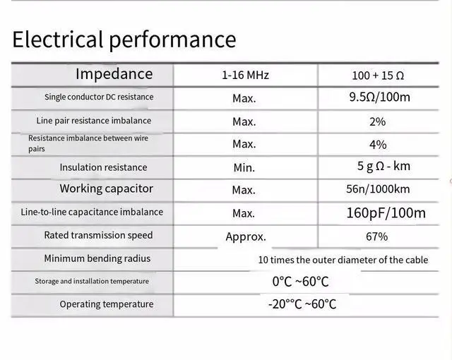 The cable is made of oxygen-free copper. Each two cores are twisted together. It hasa PVC eco-friendly outer sheath, an anti-tension rope, a polyester film, and anoverlapping wrap.