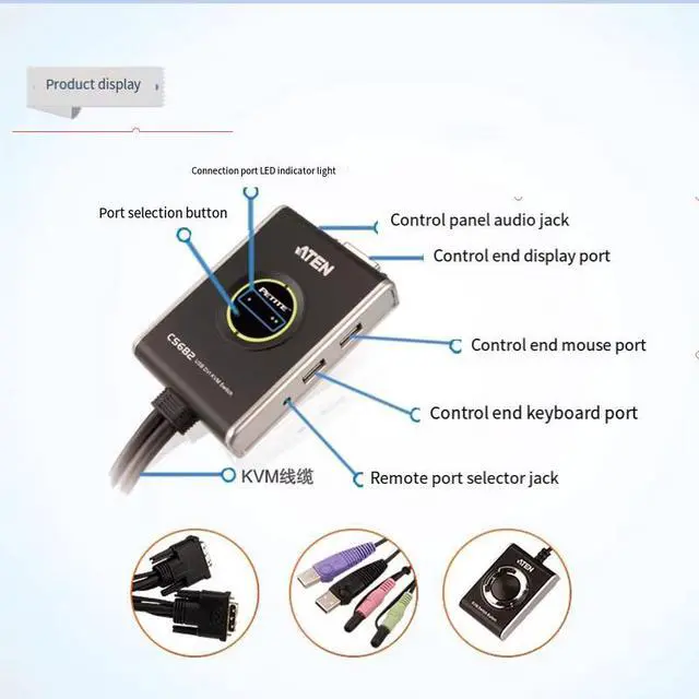 Video DynaSyncTM technology - an exclusive ATEN technology- canprevent problems caused by power on/off operations and maintain theoptimal display resolution when switching between connection ports.