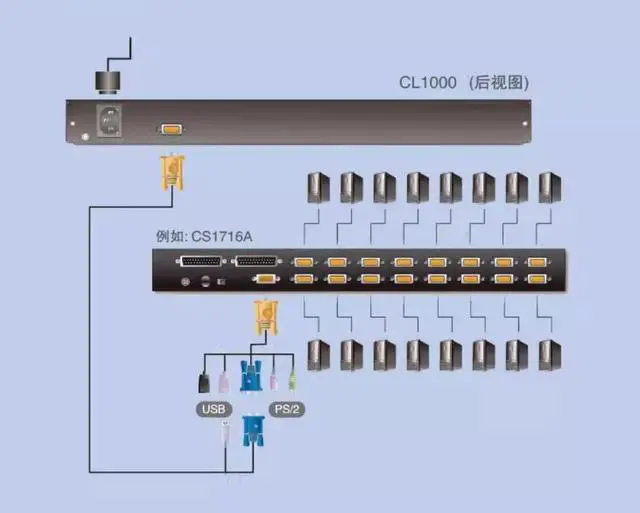 The CL1000M KVM control unit integrates a 17"LCD monitor, keyboard and touchpadinto a 1U-sized chassis. This control unit provides users who have already installed aKVM switch with convenient "rack" control access.