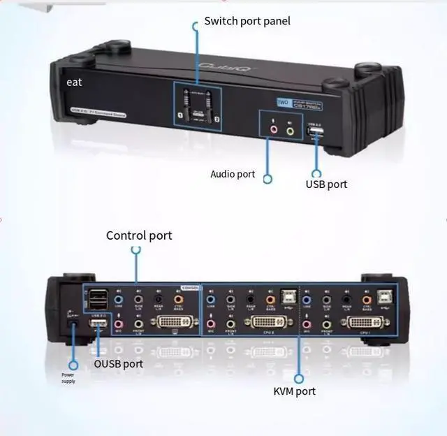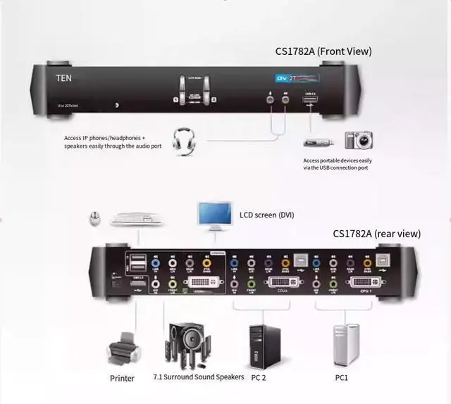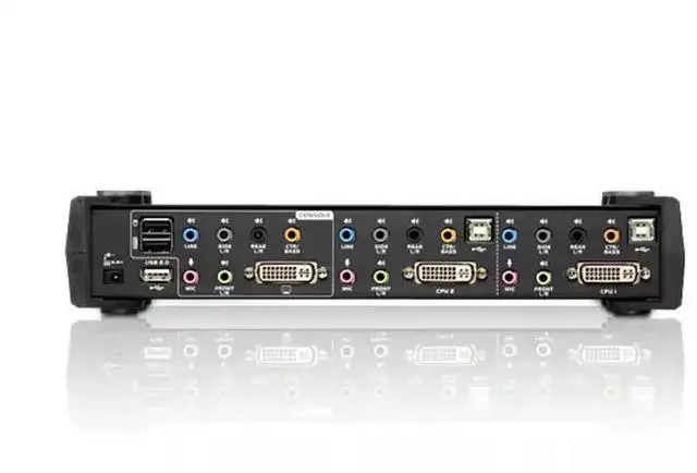 A set of USB control ports can control 2 computers and 2 additional USB devices.