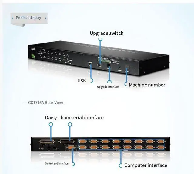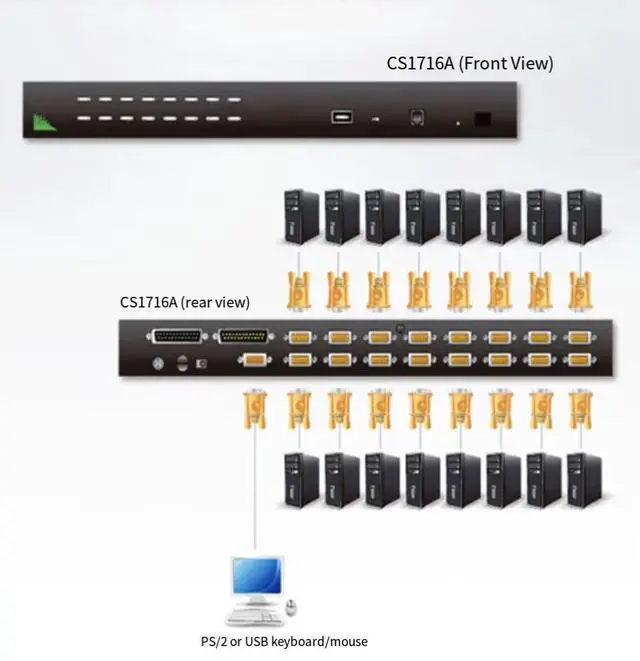 The USB-PS/2 control port group can directly manage 16 servers independently.