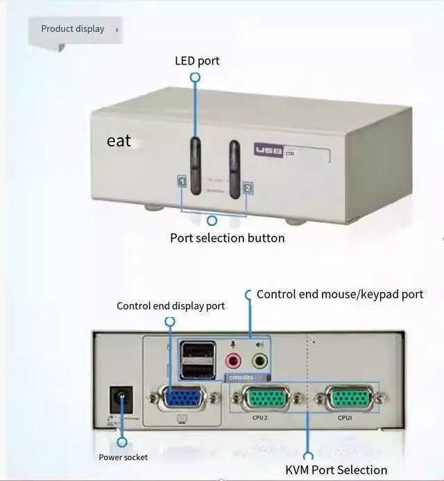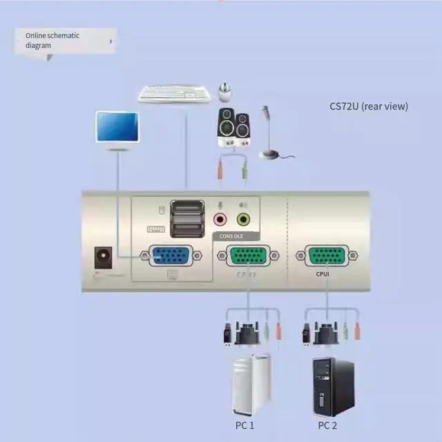 A set of vGA control terminals can manage two computers with USB VGA interfaces.