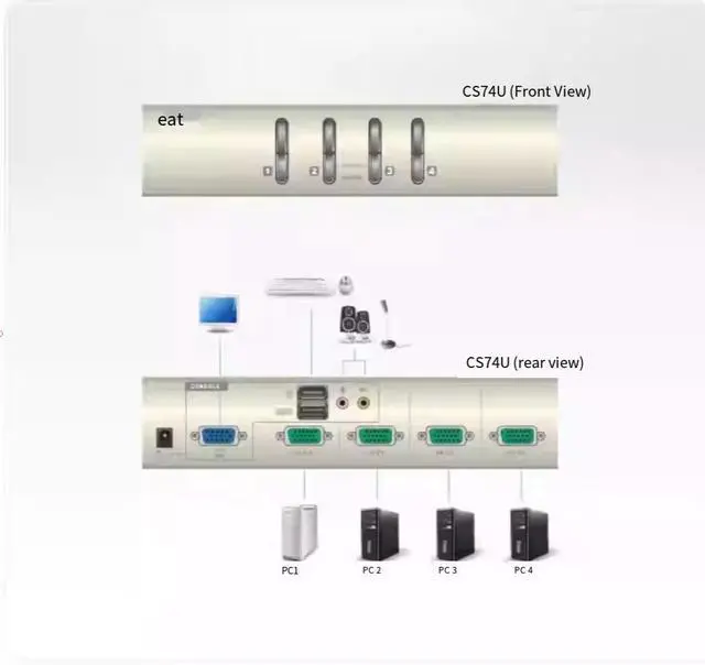 A set of vGA control terminals can manage 4 computers with USB VGA interfaces.