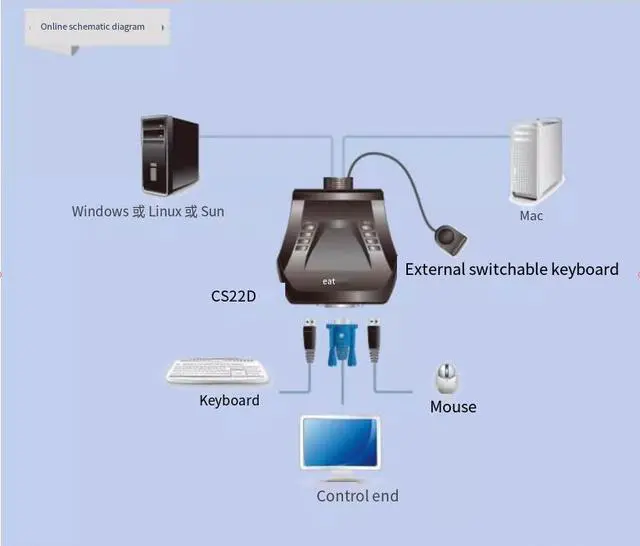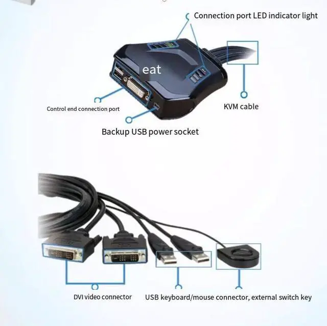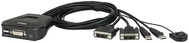 A set of DVl-D control ports can manage two USB DVI-D interface computers.