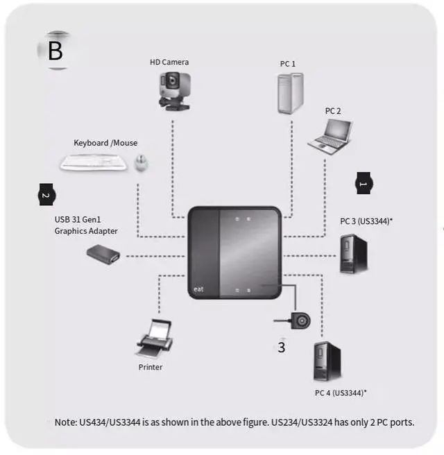 , Allows 2/4 computers to share 4 USB 3.1 Gen 1devices