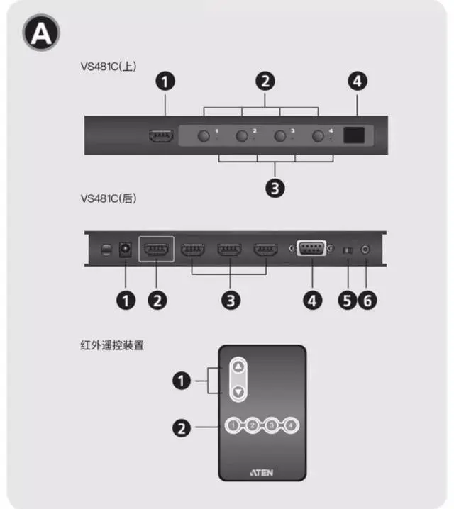 The device, VS481C, can connect up to 4 HDMl input sources. Three HDMil inputports are located on the rear panel,and one is at the front.