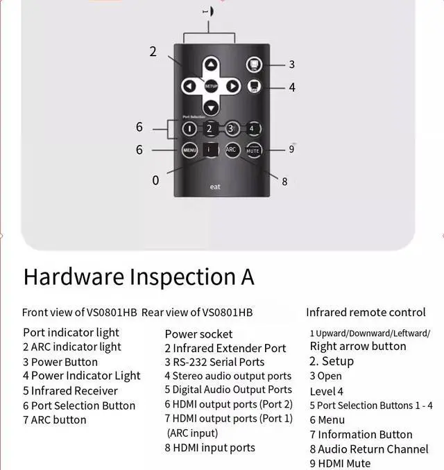 Thus, the basic installation of the VS482B four-port dual-output true 4K HDMl switcher is completed.