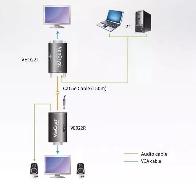 JIse Cat 5e cables to extend audio and video signals, with the maximum transmissreaching up to 150 meters.n distance