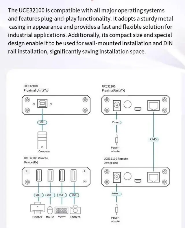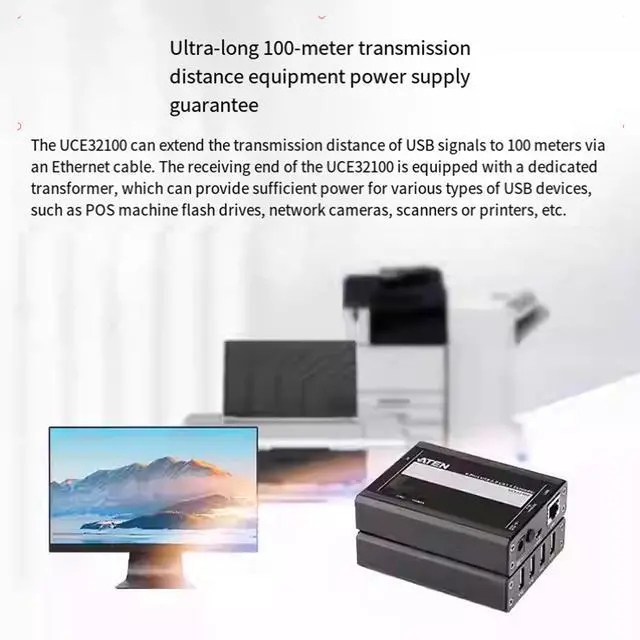 Through Ethernet cables, the transmission distance between USB peripheraldevices and the computer can be extended up to 100meters at the maximum.