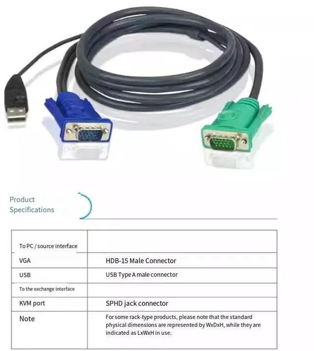 1.8M USBinterface switcher connection cable +3-in-1 SPHDProvide HDB and USB signal connection ports for computer end The connection length of the three-in-one(mouse/keyboard/image) SPHD KVM switcheris 1.8 meters.
