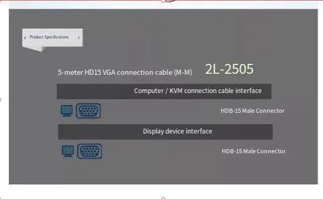 VGA cable for computer monitor connection - TV extension data cable - projection cable 5 meters 2L-2505