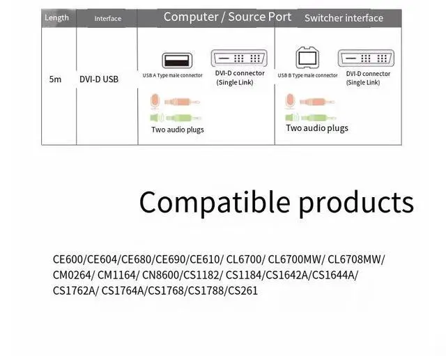 ATEN USB DVI-D Single-Channel Specialized KVM Switcher Connection Cable 5 meters 2L-7D05U