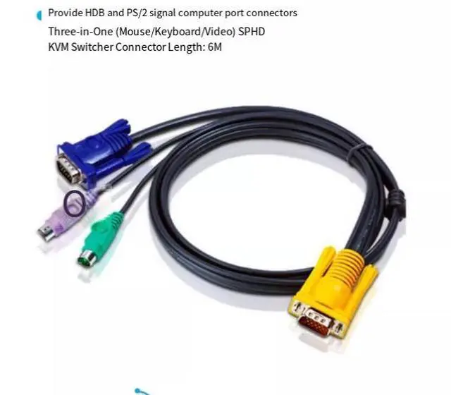 Provide HDB and PS/2 signal computer connection portsThree-in-One(Mouse/Keyboard/ideo) SPHD KVMSwitcher Connector Length: 6M