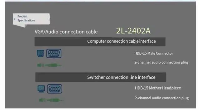 VGA cable for computer monitor connection - TV audio and video data cable, 1.8 meters, 2L-2402A