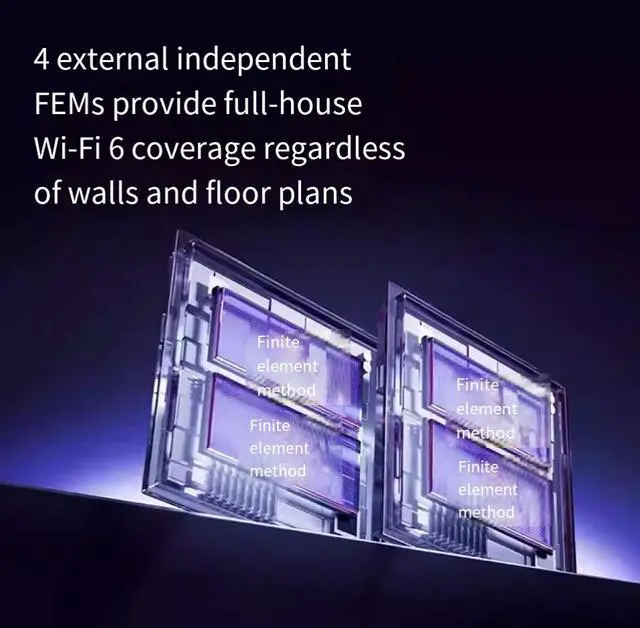 4 external independentFEMs provide full-houseWi-Fi 6 coverage regardlessof walls and floor plans