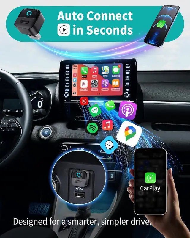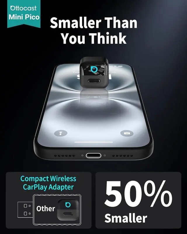 • 2026 Wireless CarPlay Adapter Should Be Like ThisDesigned with a minimal, space-saving form, the Ottocast Mini Pico sits flush with your USB port.Once plugged in, its barely visible, keeping your dashboard clean and uncluttered as if nothing extra is installed.(Free USB-A to USB-C adapter included)