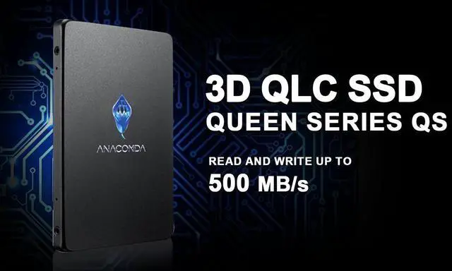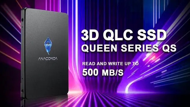 ANACOMDA Slim 2.5" QS 480GB SATA III 3D QLC NAND Flash Internal Gaming Solid State Drive (SSD) Internal SSD Read Speed up to 500MB/s Write Speed Up to 500MB/s. Made in Taiwan
