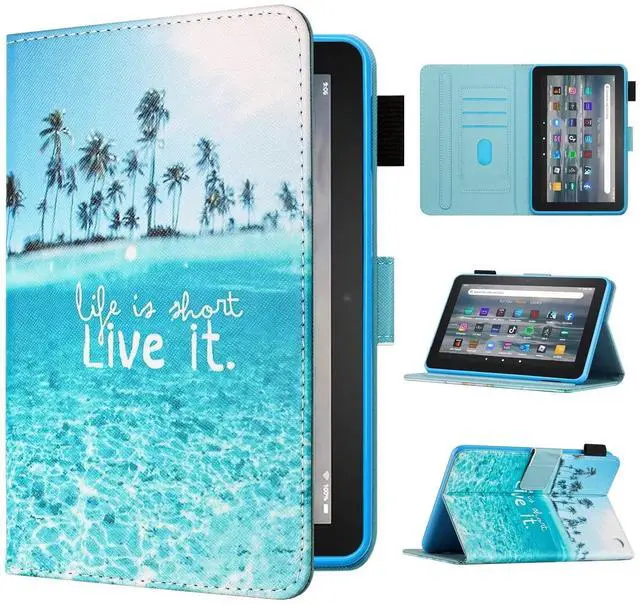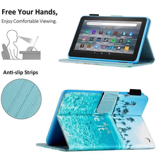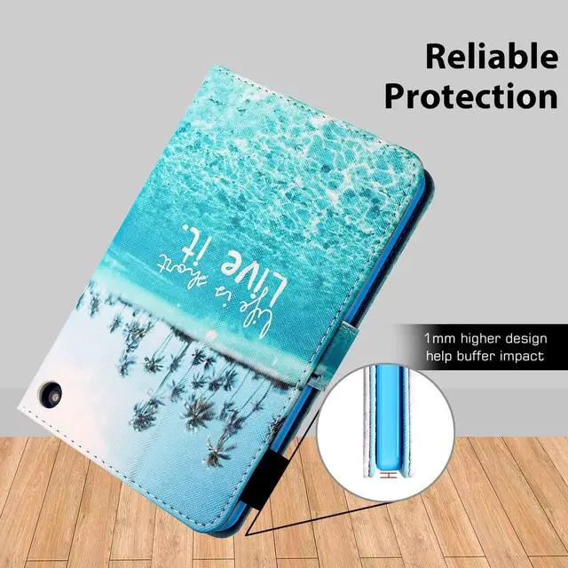 Fancity for All-New Fire 7 Tablet Case (Only Compatible with 12th Generation, 2022 Release), Smart Wake Sleep Slim Case with Card Slot, Flip Stand Cover for Fire 7 Tablet, Beach