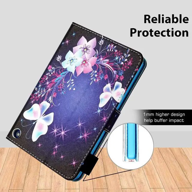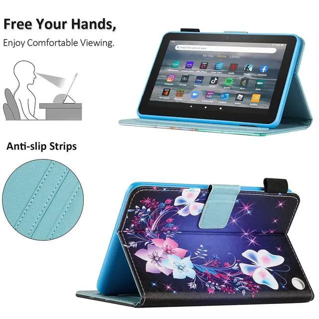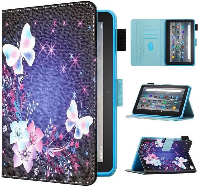 Only FitOnly Fit All-New Kindle Fire 7 Tablet 2022 Release 12th Genneration. NOT Fit prior Fire 7 tablet 9th/7th generation 2019/2017 ReleaseFull ProtectionCombine novelty and quality in everything we make. Elastic Stylus HolderA smart holder is designed to hold your stylus pen. Auto Wake/SleepThis case is built-in magnetic strip. It automatically wakes your tablet when opened and puts it to sleep when closed. 2 Standing AnglesThis case has stitched strips, you can prop up your Fire 7 tablet with different viewing angles as you like. Wallet FunctionBuilt-in card slots for placing your credit card / ID card / notes and cash.