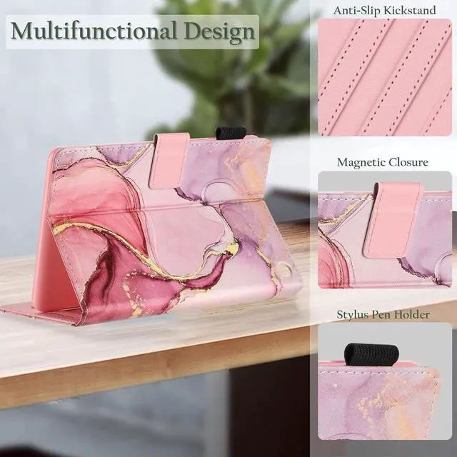 Fancity Case Fits Kindle Fire HD 8 & HD 8 Plus Tablet (12th Generation/10th Generation, 2024/2022/2020 Release) 8", PU Leather Standing Cover with Smart Auto Sleep/Wake & Card Slot, Marble Pink