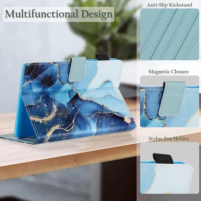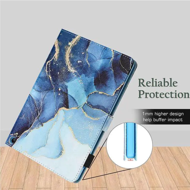 Fancity Case Fits Kindle Fire HD 8 & HD 8 Plus Tablet (12th Generation/10th Generation, 2024/2022/2020 Release) 8", PU Leather Standing Cover with Smart Auto Sleep/Wake & Card Slot, Marble Blue