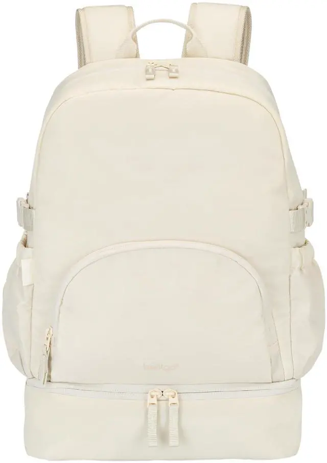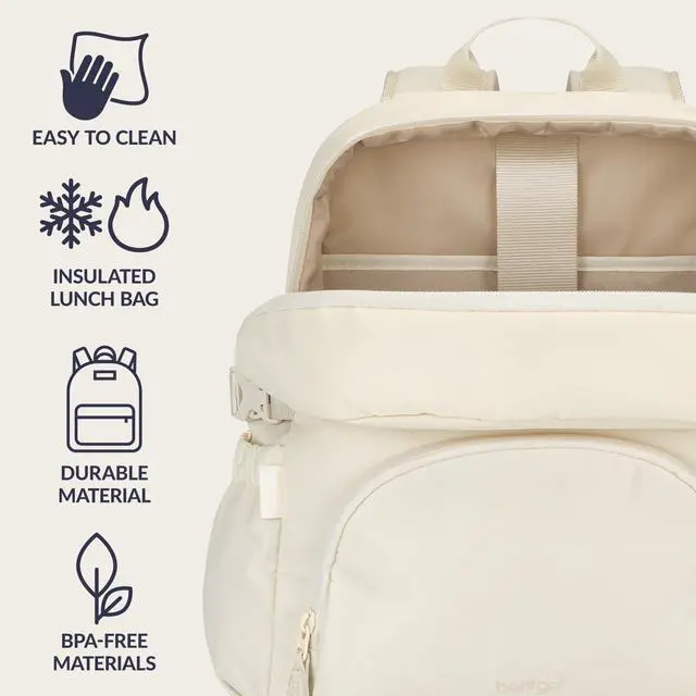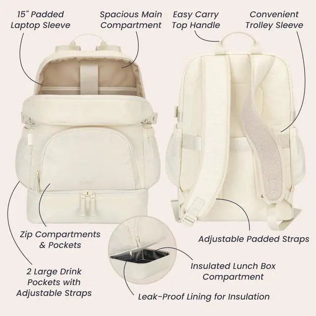 Bentgo 2-in-1 Adult Backpack & Insulated Lunch Bag Lightweight, Water-Resistant Travel Backpack with 9 Compartments, Laptop Sleeve & Trolley Sleeve for Work & Everyday Use (Bone)
