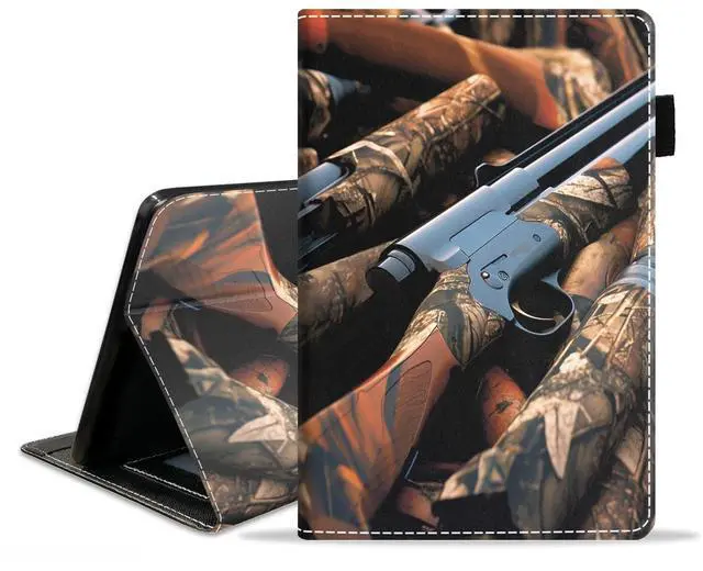 Case for All-New Kindle Fire HD 8/Fire HD 8 Plus Tablet (12th/10th Generation, 2022/2020 Release), Slim PU Leather Cover with Card Slot & Pencil Holder, Duck Hunting Camouflage Shotgun Bullets Decoy