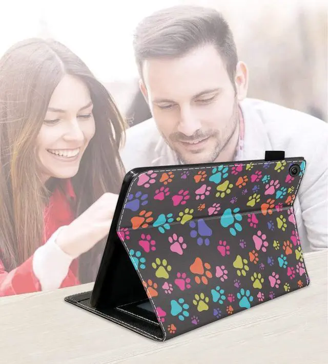 Product Features: 1. Fire HD 10 2019 case with HD print in colorful pattern of various style, Durable to use and no fade, Perfectly decor your tablet, Beauty and function come together. 2. Made of durable Premium PU leather to prevent scratches, It is durable, slim, comfortable, lightweigh. 3. Viewing angle frees your hands from other activities and avoids any joint pain, and enables you to type or watch videos comfortably. 4. Provides auto sleep/wake function with built-in magnetic strips. Smart automatically wakes or puts your device to sleep when the lid is opened and closed. 5. Designed with 4 delicate card slots inside for you to carry your necessary cards. There is a flexible pencil holder at the edge of the shell for keeping your stylus in place (Stylus is not included). 6. Precise cutouts align well with your tablet's features (camera, speaker, ports and buttons) and allow smooth operation without removing the case. 7. This tablet case would be a perfect gift for girls boys parents and your friends. Also it's great for travel, business or daily using.