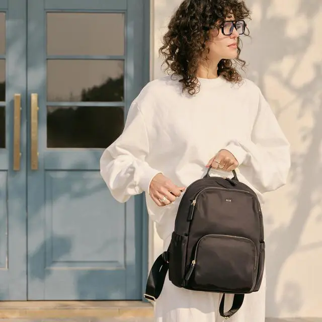 ELLE Travel Backpack for Women, Lightweight Casual Daypack with Organized Multiple Pockets, 14L Carry on Backpack for College/Leisure (Black)