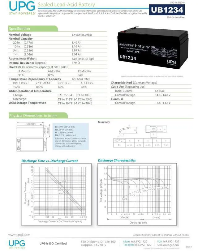 Universal Power upg-ub1234 Battery 12v 3.4ah [Camera]