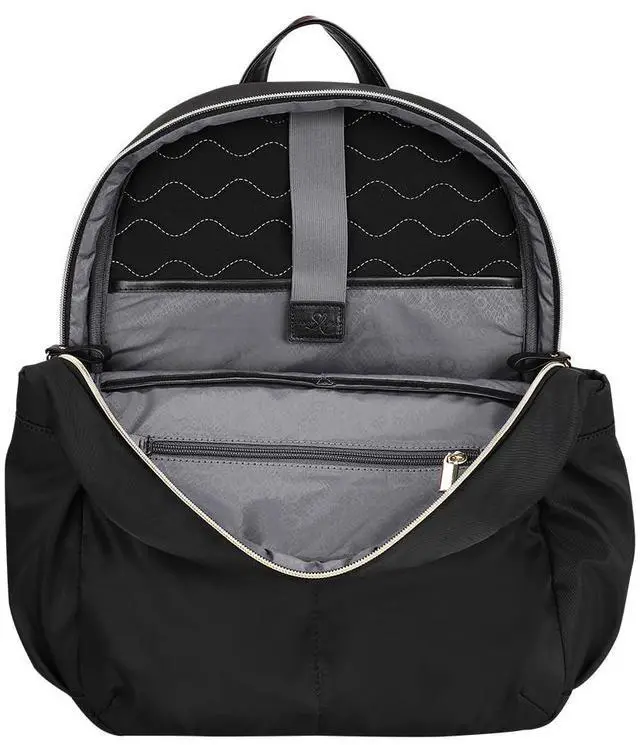 Sophisticated backpack will accommodate up to 14" laptop + room for all of your accessories.