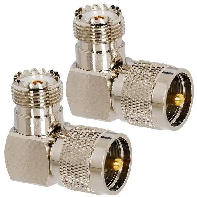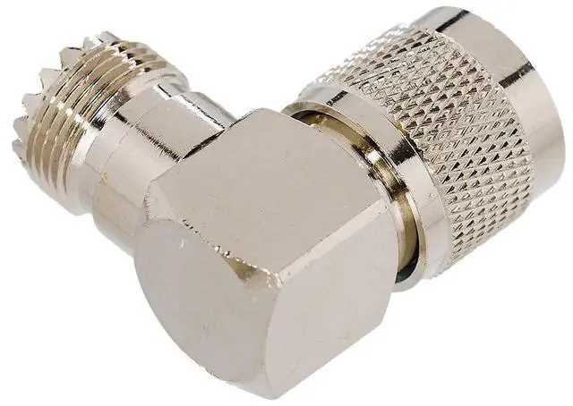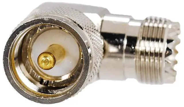 (8) One side is UHF Female (outside screw with female pin) and other side is UHF Male (inside screw male pin) at 90 degree angle.