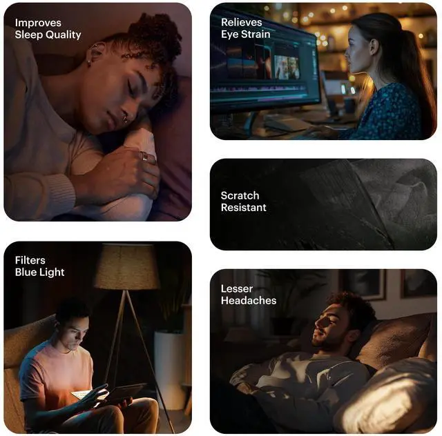 Advanced Blue Light Blocking Glasses for Men and Women: Designed specifically for long hours of screen time, these blue light blocking glasses protect your eyes from harmful blue light, reducing eye strain and headaches. Whether you're working, gaming, or scrolling on your phone, these blue light blockers provide unmatched clarity and comfort for every activity. Perfect as computer glasses for men who value productivity and eye health. The glasses block out 95% of this spectrum for a sound sleep