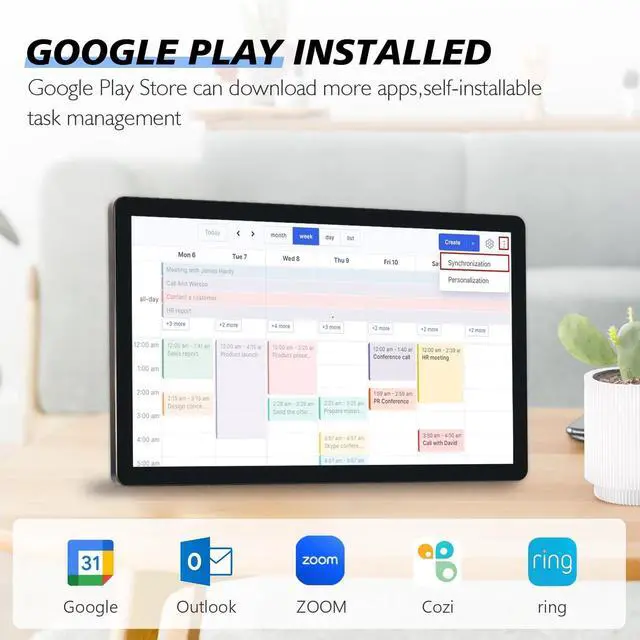 • Smart Digital Calendar Planner: Freely install apps via the Play Store. Compatible with Google Calendar, iCloud Calendar, Outlook Calendar. Functions as a kitchen TV for enjoying your subscription streaming services.