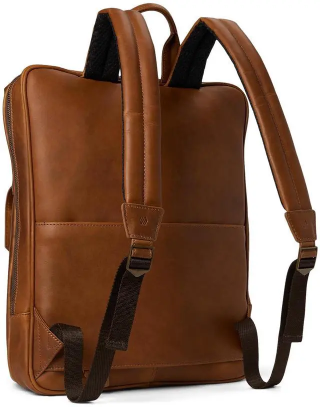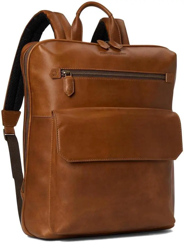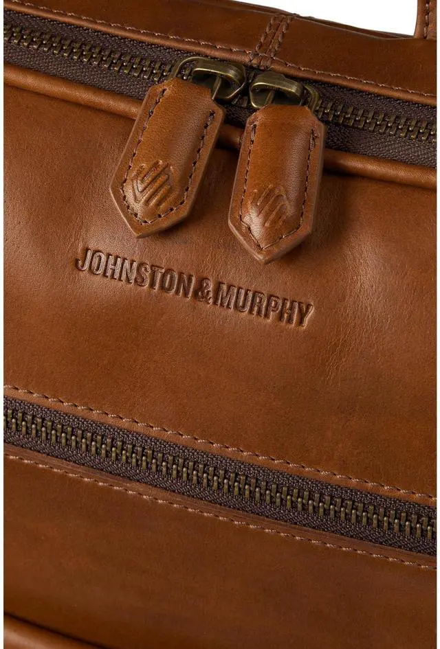 DescriptionCrafted in our full grain leather that gains character the more you use it. Durable cotton twill lining. Front panel zipper pocket + leather flap pocket with magnetic closure for additional storage. Main compartment with two way zipper opening. Interior padded laptop sleeve compartment. Exterior back luggage sleeve. 13 in. L. x 2 1/2 in. W. x 17 in. H. Imported.