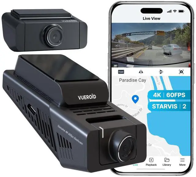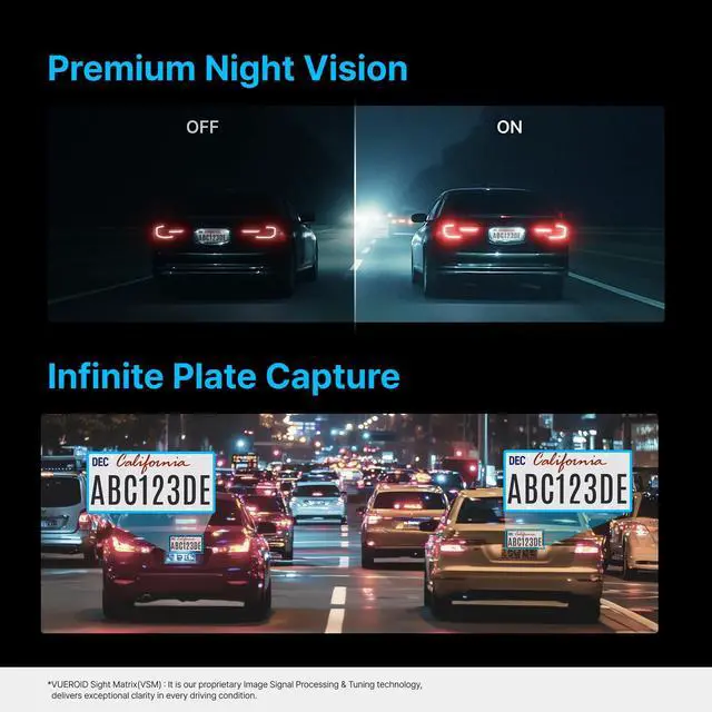 IMAGE QUALITY: The Vueroid S1 Infinite 2 Channel product is a duo dashcam that features Ultra 4K (2160P) + 2.5K (1440P) resolutions. We utilize special Image Signal Processing (ISP) and tuning technology, delivering exceptional video clarity in every driving condition. This front and rear dash cam ensures high-definition video recording with built-in Wi-Fi for easy access and sharing.
