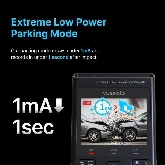 ^^ DURASHIFT PARKING MODE: Even in extreme heat, VUEROID doesnt shut down. It enters a extreme low power mode to prevent overheating automatically, then instantly records if an impact is detected. ^^ GEOFENCING SYSTEM (Auto