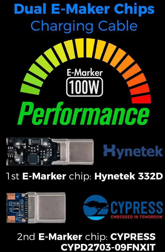 LED digital power display:USB-C data cable is equipped with two E-Marker chips, supporting high power and large current (20V/5A). This fast charging cable can identify the voltage and current required by different electronic devices and display them on the LED module.