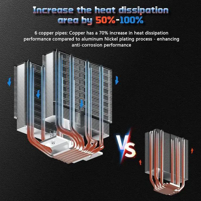 sink material: Copper pipes are used for heat dissipation, avoiding the memory design, the main body is fully aluminum fins, bringinmaximum heat dissipation area, combined with the high thermal conductivity of the thermal paste, which can perform the cooler's most powerful cooling ^^