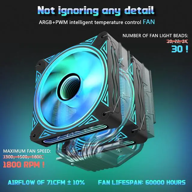 ^^ ARGB&PWM FAN: Unlike the usual ARGB fan, we used 30 LED chips, which is 120% -130% of the LED chips required for a typical fan, in order to extend the lifespan of the fan and achieve the desired lighting effect The light connections are 5V 3pin ARGB. Standard size industrial grade PWM performance