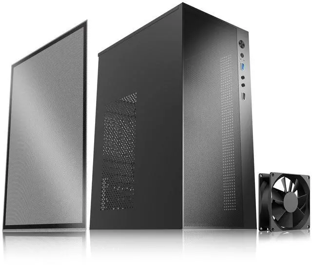 Package list: One chassis, cold pressed steel plate side panel, large magnetic suction mesh pad side panel, screws required for installation, 80mm intelligent temperature control fan. Please note that only one fan can be installed in this chassis.