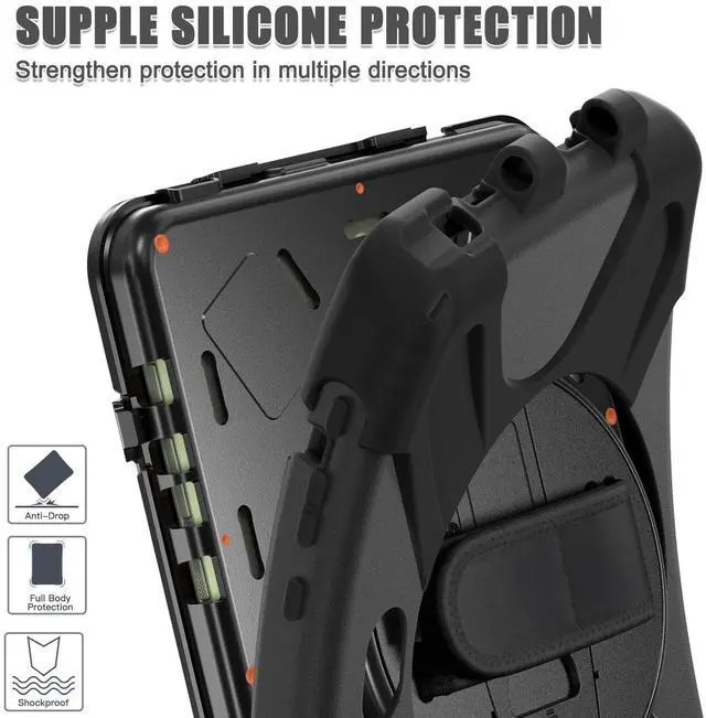 • [360 Rotating Stand + Adjustable Hand Strap] Swivel kickstand for portrait/landscape viewing. Hand strap secures Galaxy Tab Active Pro/Active5 Pro during activities.