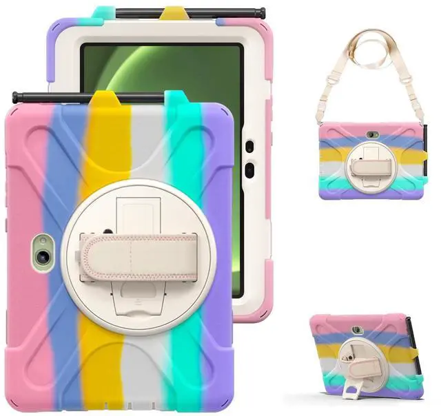 [Perfect Fit for Tab Active Pro Series] Designed for Samsung Galaxy Tab Active Pro 10.1" (2019 SM-T540/T545/T547) & Active4 Pro 10.1" (2022 SM-T630/T638) & Active5 Pro 10.1" (2025 SM-X350). [Stylus NOT included and NO Screen Protector] ^^ [360 Rotating Stand + Adjustable Hand Strap] Swivel kickstand for portrait/landscape viewing. Hand strap secures Galaxy Tab Active Pro/Active5 Pro during activities. ^^ [Detachable Shoulder Strap] 5ft adjustable strap for horizontal/vertical carry. Perfect for Tab Active Pro 10.1 fieldwork or car entertainment. ^^ [Military Drop Protection + Kid-Safe] 3-layer armor (PC shell + shock-absorbing silicone + front frame).