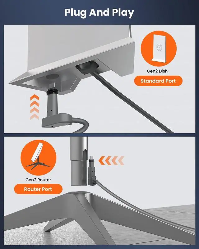 • Starlink Satellite Gen2 Cable: Designed for Starlink Actuated Gen 2, simply connect this Starlink replacement cable to your Starlink Gen 2 dish and router. Enjoy plug-and-play fast connectivity, saving you time and effort. With a wide range of cable lengths, it is ideal for different use scenarios: building, motorhome, tent, sailing.