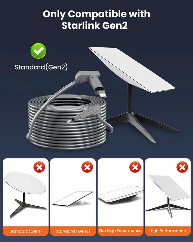 • Durable & Weatherproof & UV Resistant: Shielded with a high-quality UV-resistant jacket, the Starlink Gen 2 cable is anti-aging and can wit