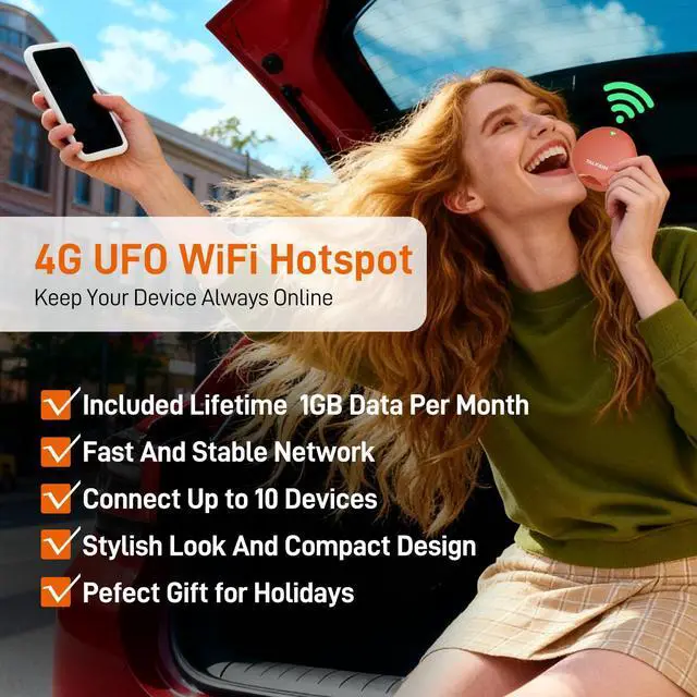 UFO Portable WiFi Hotspot - Your Essential Companion In the USA: Portable WiFi stays online, anywhere, anytime. From the open road to your living room, this Portable WiFi Mobile Hotspot for travel provides a reliable 4G LTE USA coverage. Power your remote work as you embrace RV life, or instantly safeguard your family's online world during a sudden internet outage. Never feel lost or disconnectedyour essential portable WiFi hotspot device companion is here.