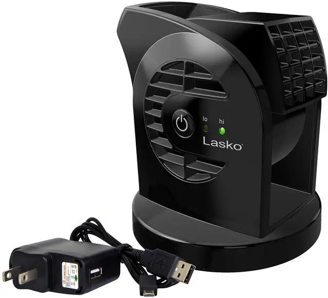 Lasko's MyCool Mini Blower Fan plugs directly into a computer and comes with an AC adapter wall plug, so it's convenient to power no matter where you need it. The pivoting blower fan head means you can aim it higher for when you're working at your standing desk or lower to direct airflow at the bed from a bedside table. This compact fan is perfect for travel because it's lightweight, small, and versatile. It features 2 quiet speeds and a built-in carry handle.