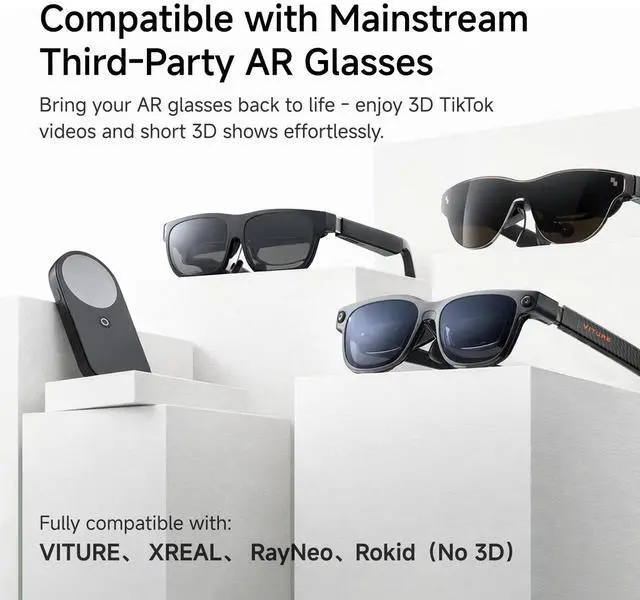 Broad AR Glasses Compatibility: Fully compatible with mainstream AR glasses including Rokid, VITURE, XREAL, and RayNeo. Revive your AR gear and effortlessly enjoy 3D TikTok videos, YouTube shorts, and immersive content in stunning augmented reality. ^^ Unlock dual-mode connectivity with this all-in-one adapter: experience an immersive 3D home theater via HDMI with DLP-Link support, or enjoy seamless plug-and-play USB-C integration for instant presentations and media viewing with real-time file syncing. ^^ Power and Portability Converge in