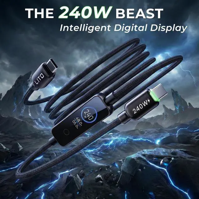 SMART TFT TOUCH SCREEN & POWER METER: Stop guessing, start knowing. Unlike basic cables, our industry-first TFT touch screen visualizes real-time power flow. With a simple tap, switch between the precise "Digital Power Meter" and "Fast Charge" mode. It provides immediate visual proof that your MacBook Pro is drawing max power or your Steam Deck is fully optimized, satisfying both tech enthusiasts and everyday users. ^^ 240W PD 3.1